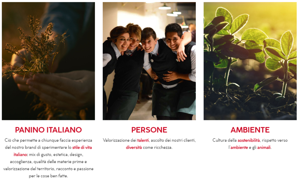 I clienti amano Panino Giusto e gli riconoscono serietà e costanza nel mantenere questo impegno. Altrettanto importanti la mission e i valori che guidano il brand:
