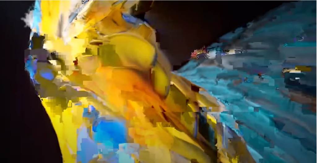 Dentro un fondale nero comincia il racconto onirico di Valentino. Qui si incontrano colori in proiezione, pixel e interferenze, che per un attimo fanno perdere il controllo a chi si trova oltre lo schermo, pensando che si tratti di un problema di rete: on-off, è tutto reale, è tutto realdigitale (parola di chi scrive).