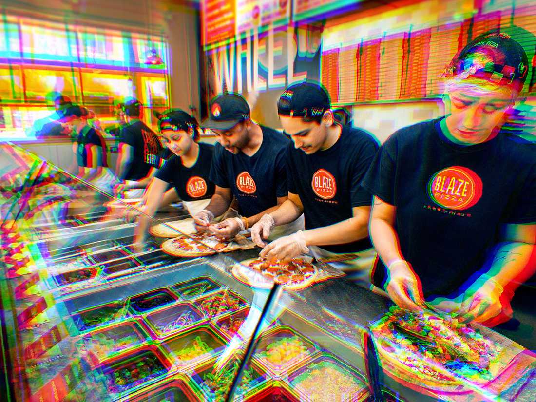 I clienti di Blaze sperimentano quindi velocità e qualità: grazie agli speciali forni brevettati, le pizze sono pronte in un tempo medio di tre minuti. Quella che viene offerta al cliente è un’esperienza veloce, ma anche personalizzata: ognuno si crea “dal vivo”, lungo la linea, la sua pizza.