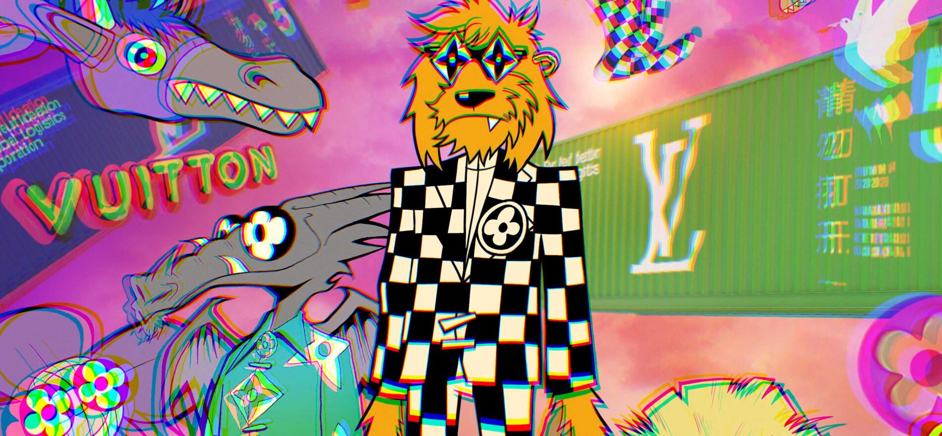Il primo episodio, si conclude con l’immagine di un drago verde che, volando, finisce dentro un baule (pezzo iconico e inconfondibile del brand) firmato Vuitton (caratteristiche le scritte: “LV Global” e “V.A.A.” rispettivamente sul fianco e in cima).