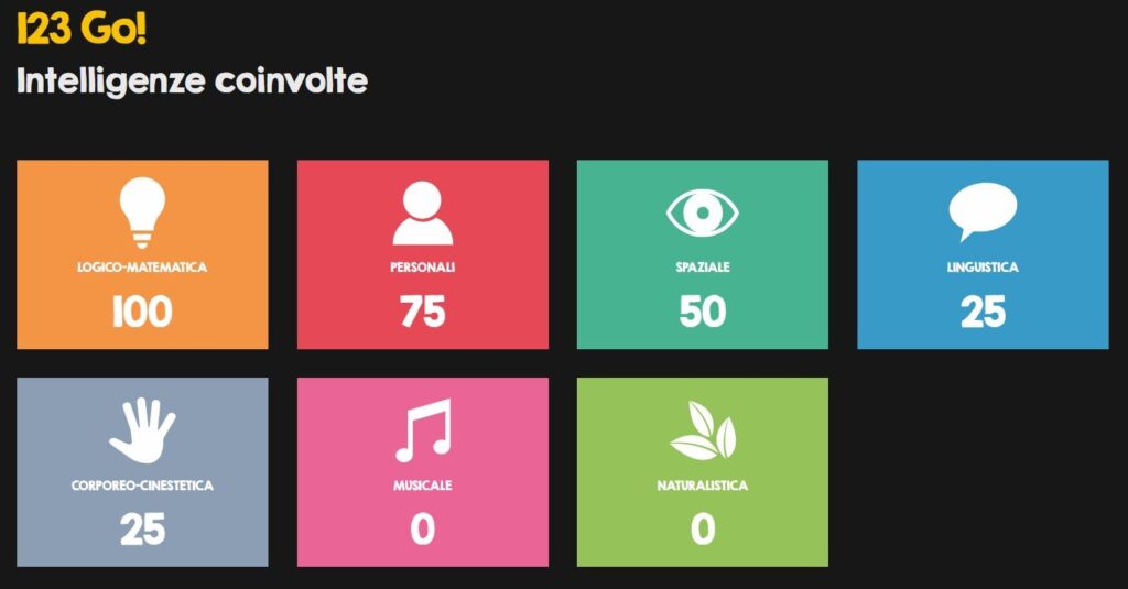123 Go! è un gioco per bambini dai 3 ai 6 anni, il suo scopo è molto semplice: insegnare ai bambini come si conta, riconoscendo i numeri da 1 a 5 e associandoli alle relative quantità. Dando uno sguardo alla pagina web di Headu dedicata a 123 Go! sono rimasto sbalordito: il prodotto viene presentato con immagini molto belle e, soprattutto, con informazioni dettagliate e semplici che aiutano i genitori a capire quali competenze il bambino sviluppa grazie al gioco, così come le intelligenze coinvolte e i consigli per il gioco. Fantastico!