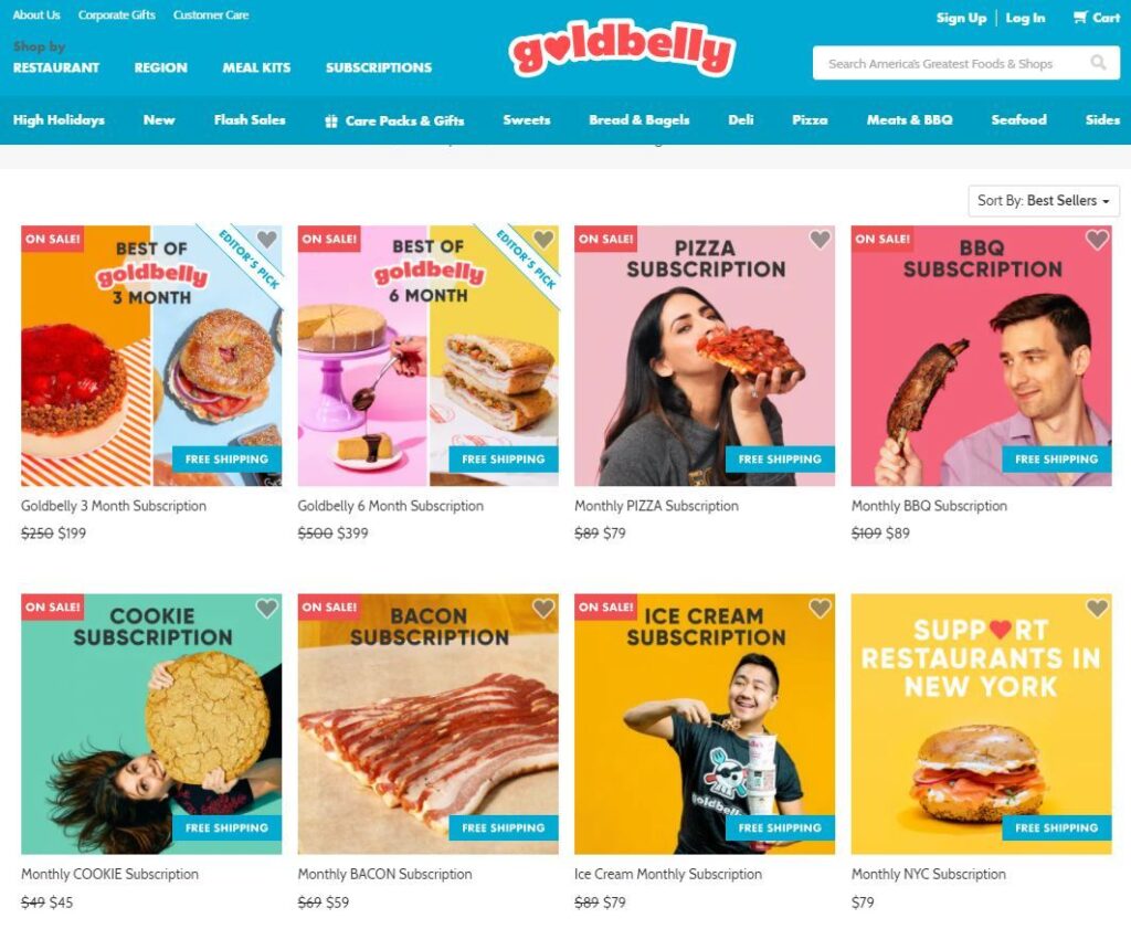 Sicuramente il concetto delle “subscriptions” si addice molto ai provider del food delivery, alle piattaforme digitali del food. Ne è un esempio Goldbelly, piattaforma online che consente alle piccole imprese alimentari di spedire i prodotti da tutti gli States direttamente alle porte dei clienti.