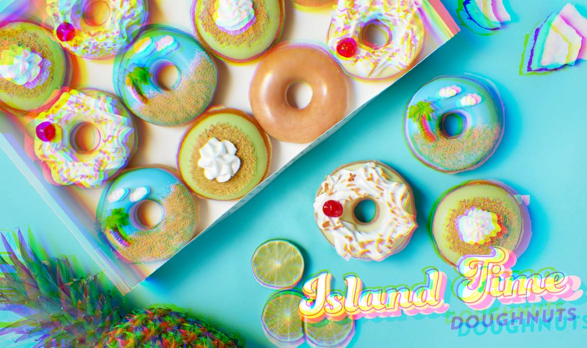 La simpatica notizia di questi giorni è che Krispy Kreme ha appena lanciato tre nuove ciambelle speciali, dedicate all’estate e al desiderio dei clienti di “fuggire dalla realtà” e pensarsi su un’isola assolata a gustare tutte le dolcezze della vita.