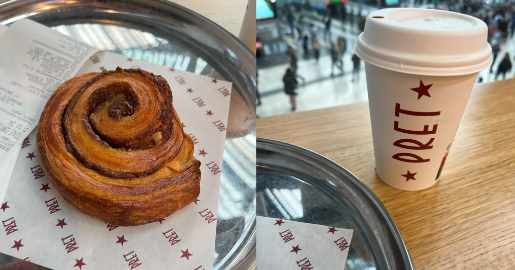 Il 1° ottobre 2025 entro per la prima volta nel nuovo Pret a Manger di Milano Centrale. Ho in mente tanti ricordi legati ai viaggi a Londra, dove Pret era un punto fermo delle mie colazioni: cappuccino in bicchiere take away e cinnamon roll, consumati di corsa prima di prendere la metro.