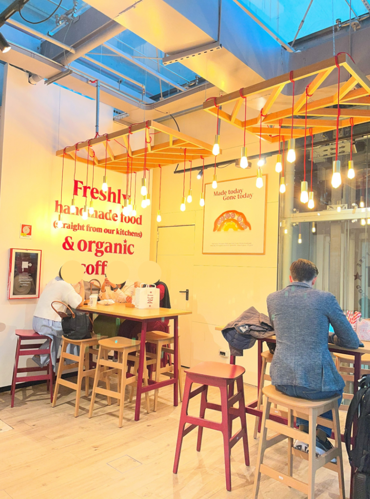- Format: caffè biologico e cibo fresco preparato ogni giorno, con la logica grab & go che ha reso Pret riconoscibile a livello globale.